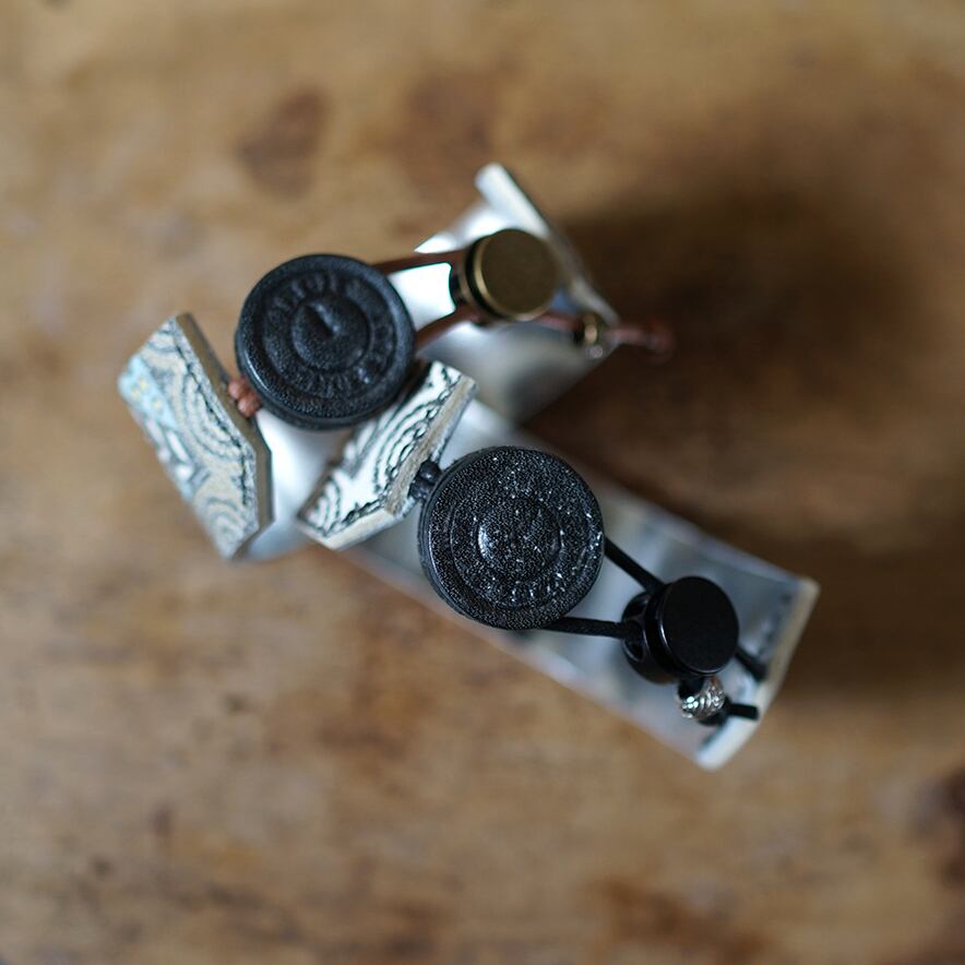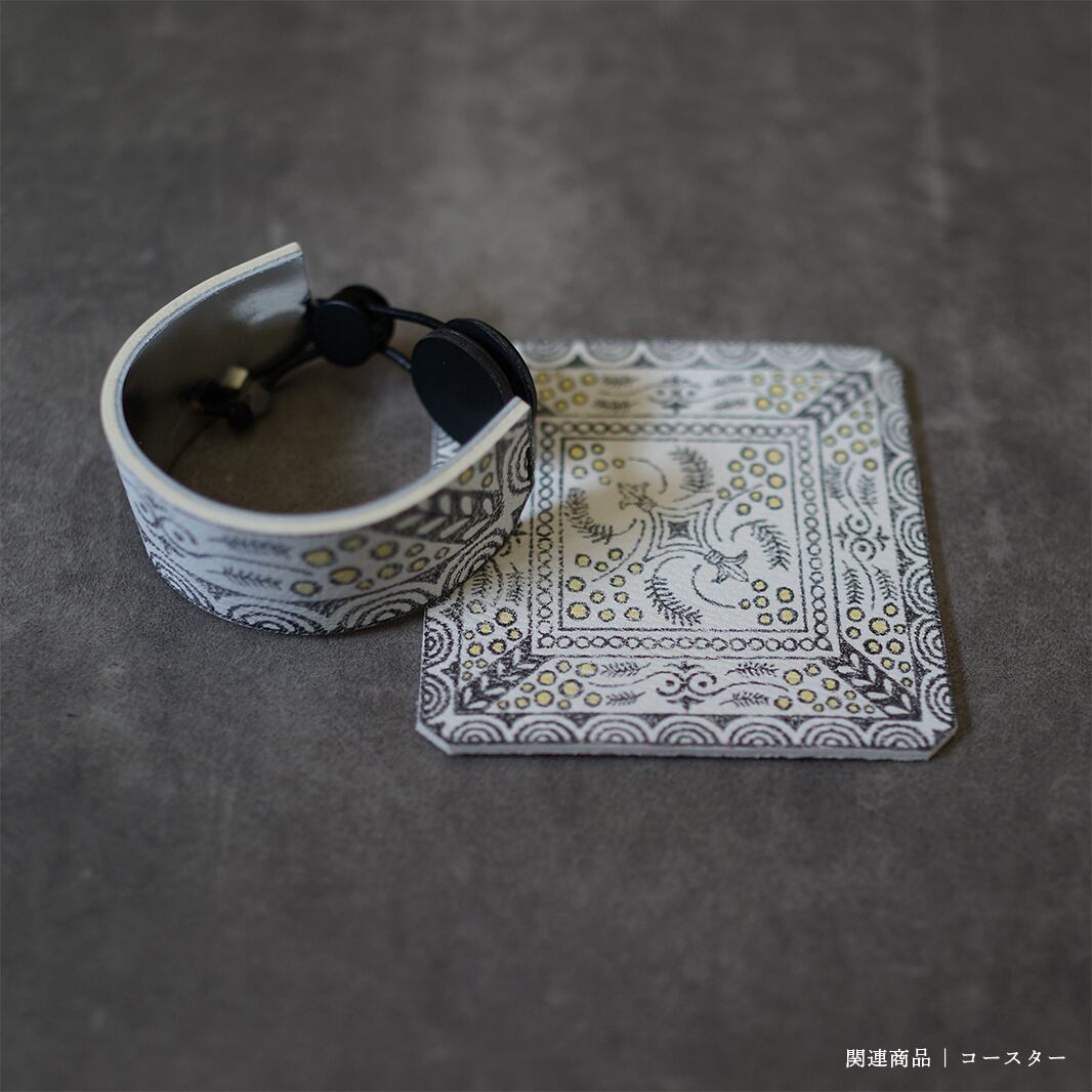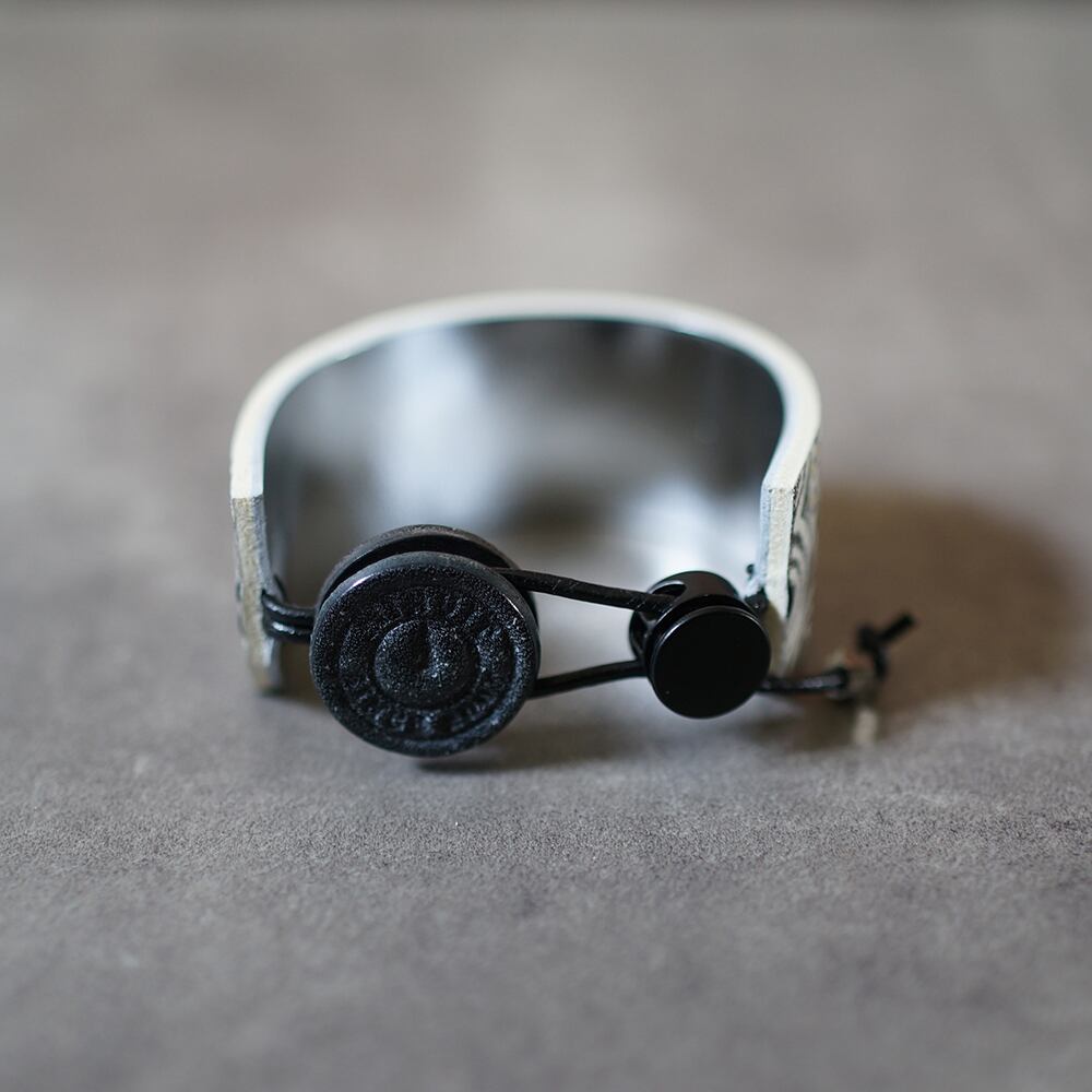 美しいホワイトレザーに写したブレスレットです。