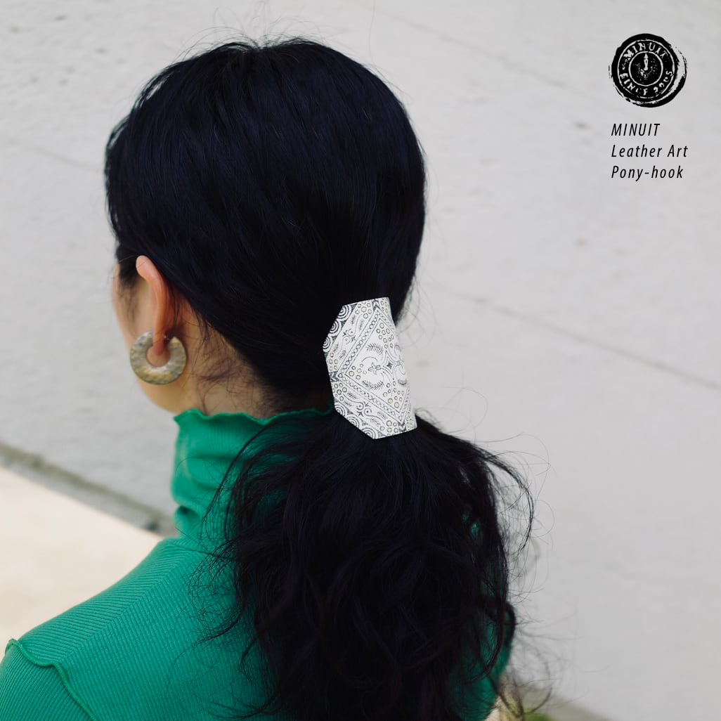 美しいホワイトの国産牛本革に写したポニーフックです。